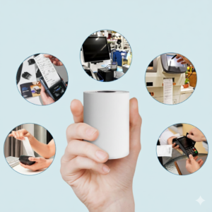 熱転写紙は通常のプリンターではなく、サーマルプリンタ(熱転写プリンター)で使用されます。熱を加えることで文字や画像を印刷します。紙に付着したインクリボンが転写され文字や画像が表現されます。感熱式よりも長期間の印字保管に向いています。